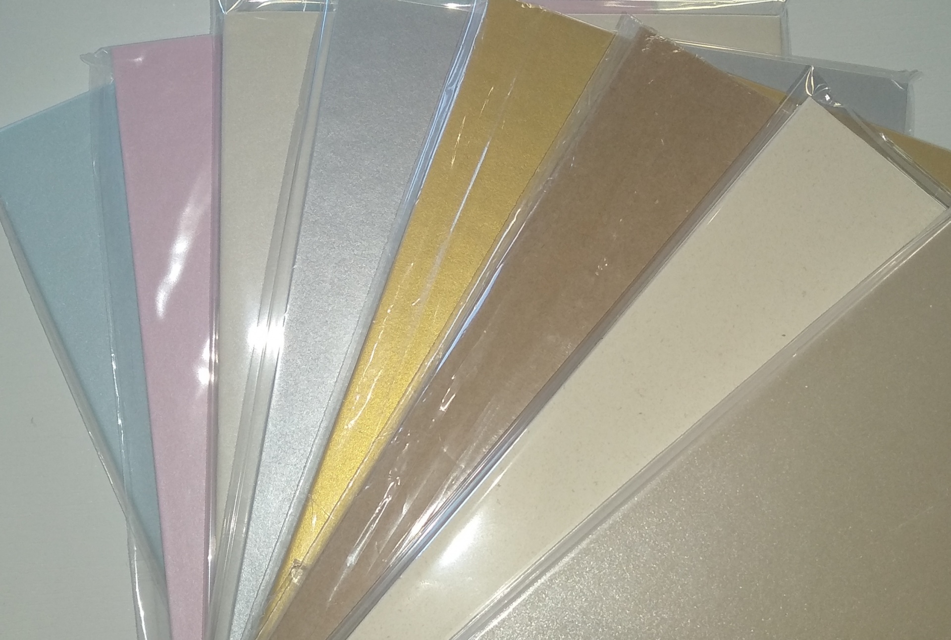 Folhas de papel colorido com acabamento brilhante embaladas em plástico