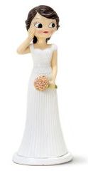 Figura decorativa de noiva com vestido branco e ramo de flores cor-de-rosa