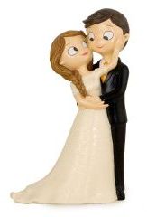 Estatueta de casal de noivos em estilo cartoon vestindo roupa formal