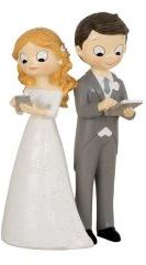 Figuras de noiva e noivo de cerâmica ou resina em pose cartoon