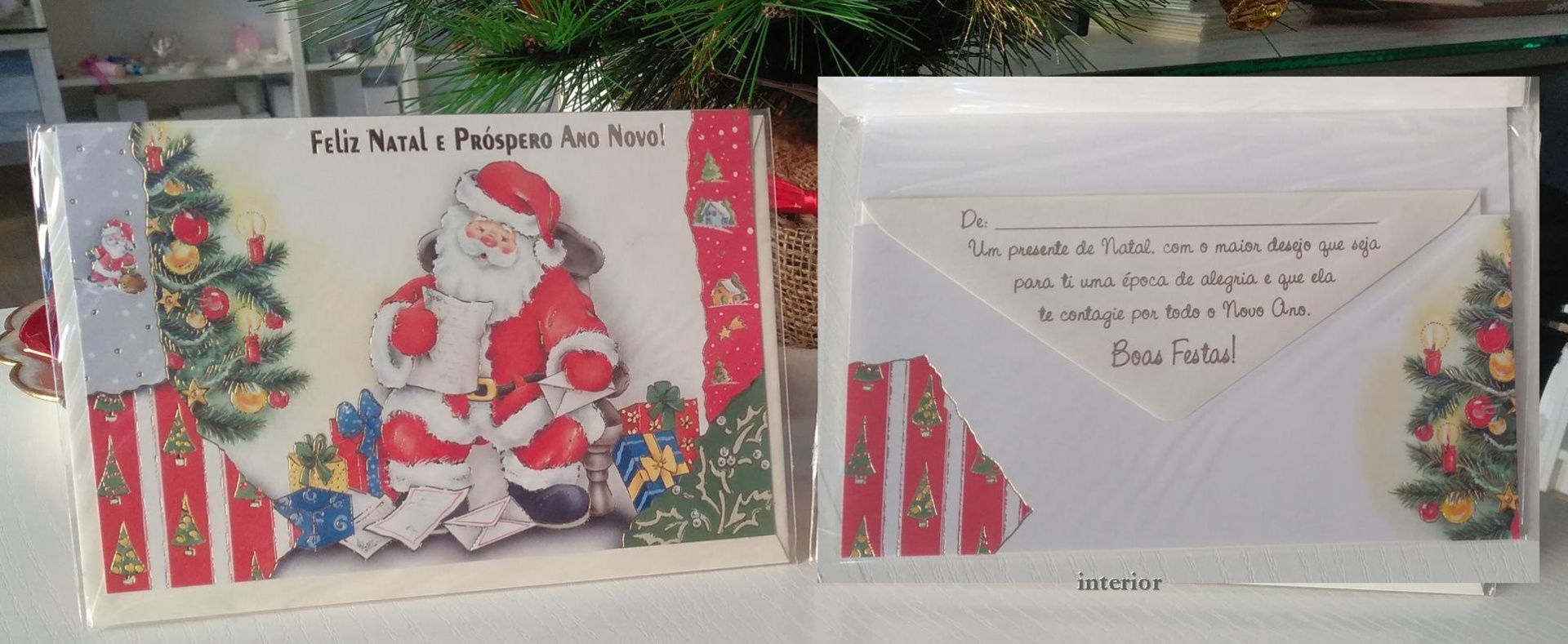 Postal de Natal com envelope pequeno no interior, para oferta.