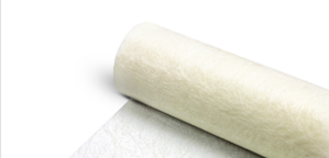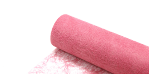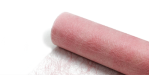 Rolo branco fibroso desenrolado sobre superfície branca.